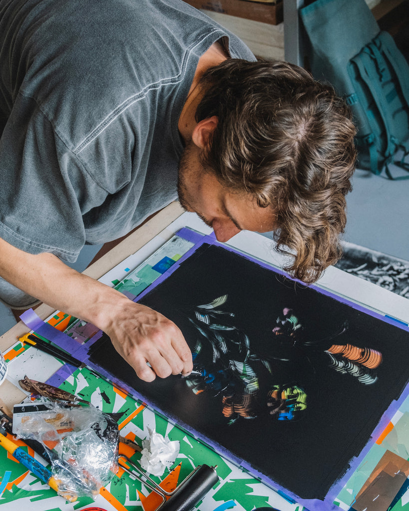 My journey into graphic design and printmaking actually began with skateboarding. The skateboard subculture is filled to the brim with cheeky graphics, bold colours, humour, a DIY mindset, a no-nonsense approach and an absolute hang for freedom. These aspects are now fundamental parts of my visual style; loud, wacky, fun, eclectic and full of colour.