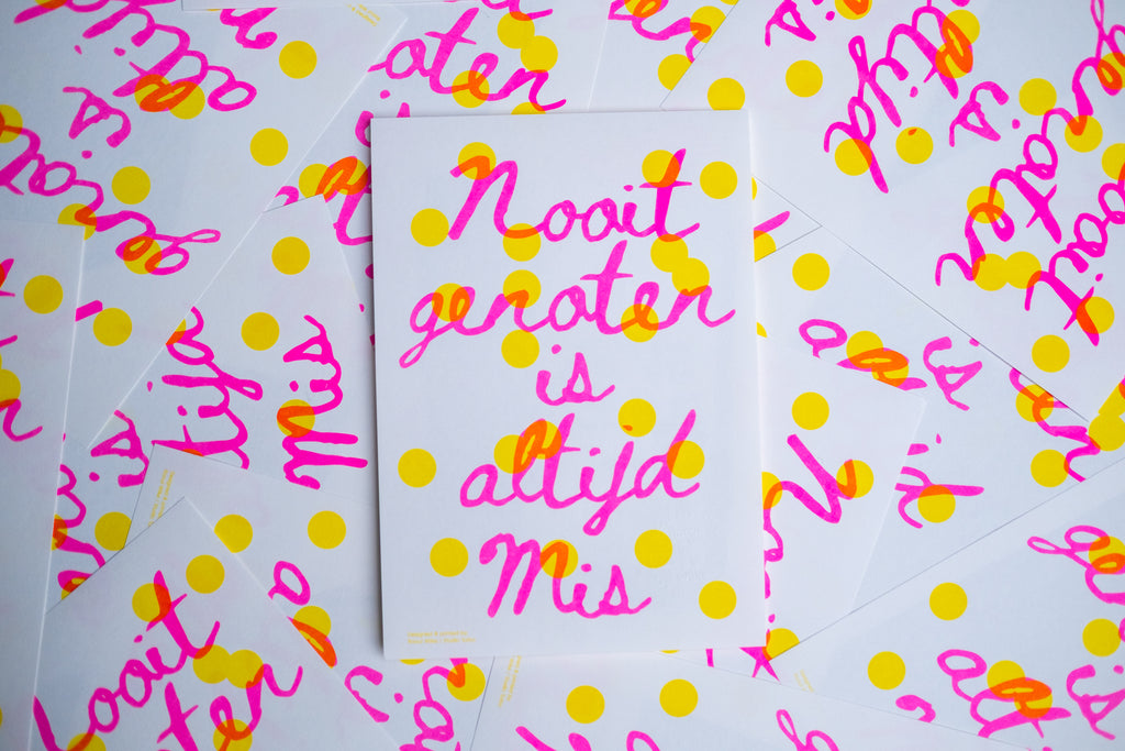 Nooit genoten is altijd mis. The perfect motto for people who like to live in the moment and enjoy every second of life.
